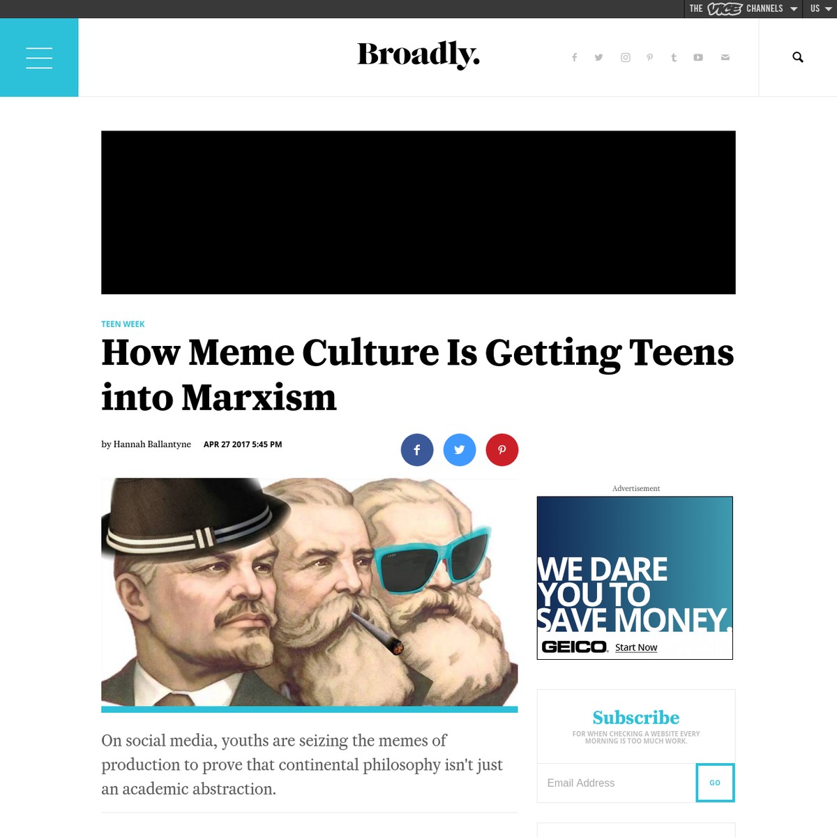 How Meme Culture Is Getting Teens into Marxism Broadly Broadly Posted. During his final year of high school Myles was voted Comedian of the Year an accolade he received for being an admin on his schools Facebook meme page. However for many those memes are all they will actually bother to learn now we have a bunch of teens many of whom never needed a job to survive.
