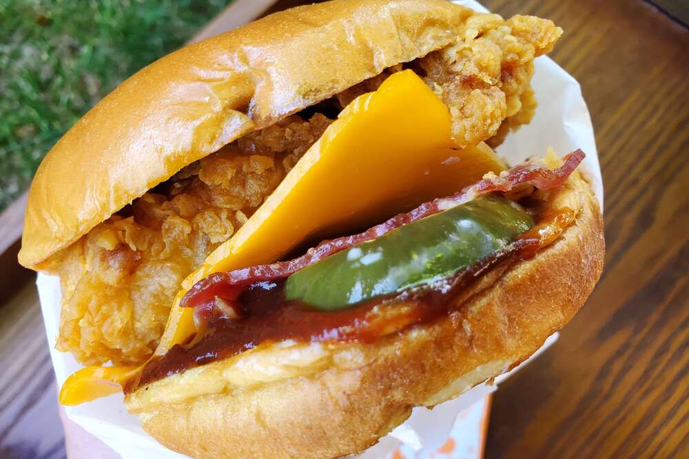 The Popeyes version of the chicken sandwich was undoubtedly better than that of the original. Popeyes has been spotted selling a new chicken sandwich called the BBQ Bacon Cheddar Chicken Sandwich at select locations in the Denver Colorado area. Popeyes New BBQ Bacon Cheddar Chicken Sandwich. The old Cajun and creole chicken sandwiches from Popeyes Ive heard theyre only location specific now. Known for its ultra flakey and crispy chicken breast fillets the classic chicken sandwich is the star of popeyes menu. Stay tuned for a wider release of Popeyes BBQ Bacon Cheddar Chicken Sandwich. A BBQ Bacon Cheddar Chicken Sandwich is being tested. Also the Popeyes chicken breast will remain crispy for longer than the Chick-Fil-A chicken breast. They describe the BBQ Bacon Cheddar Chicken Sandwich as featuring Popeyes signature buttermilk battered and hand-breaded white meat chicken fillet on a buttery toasted brioche bun and topped with two barrel cured pickle slices sweet and smoky BBQ sauce a slice of cheddar cheese and crispy bacon.